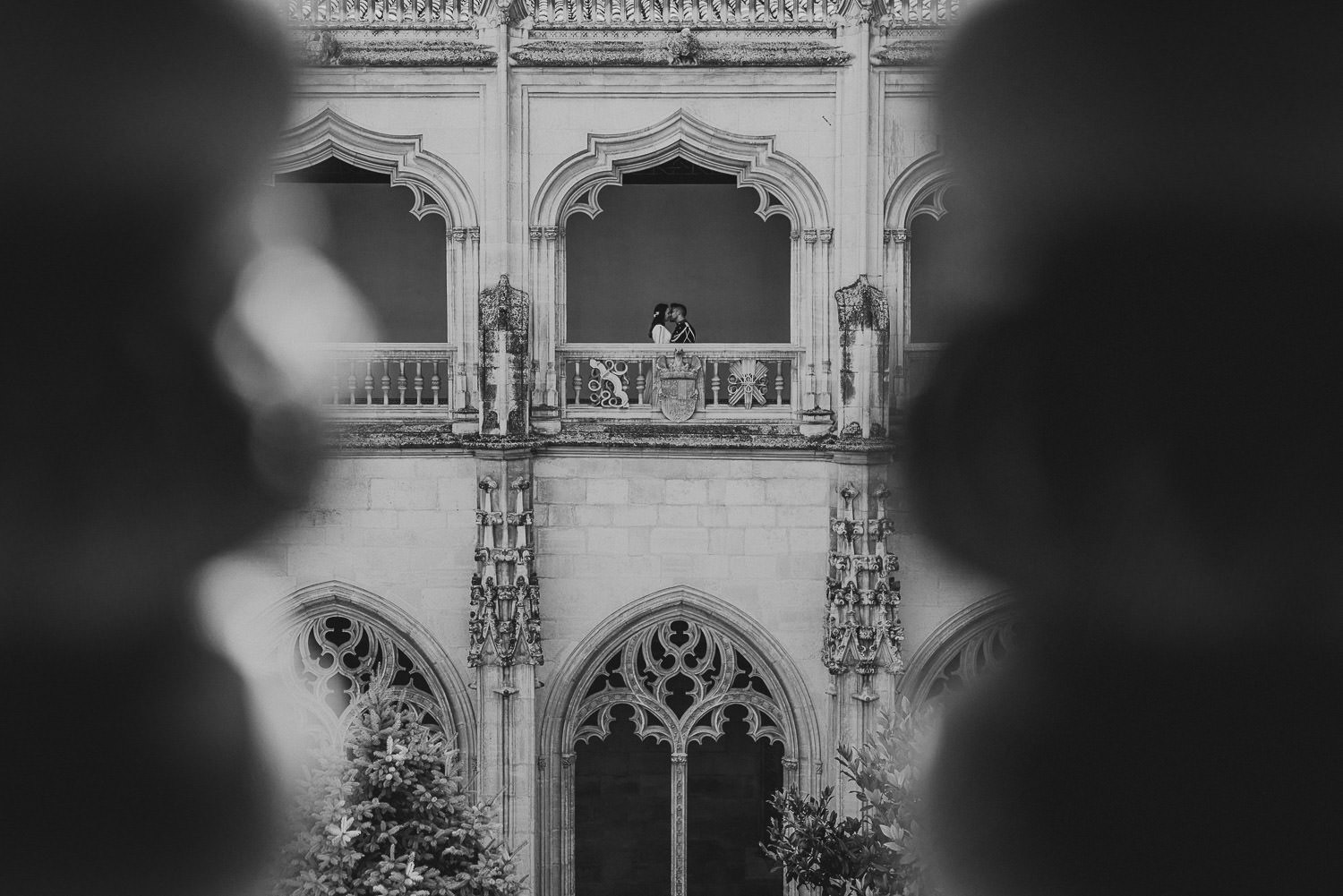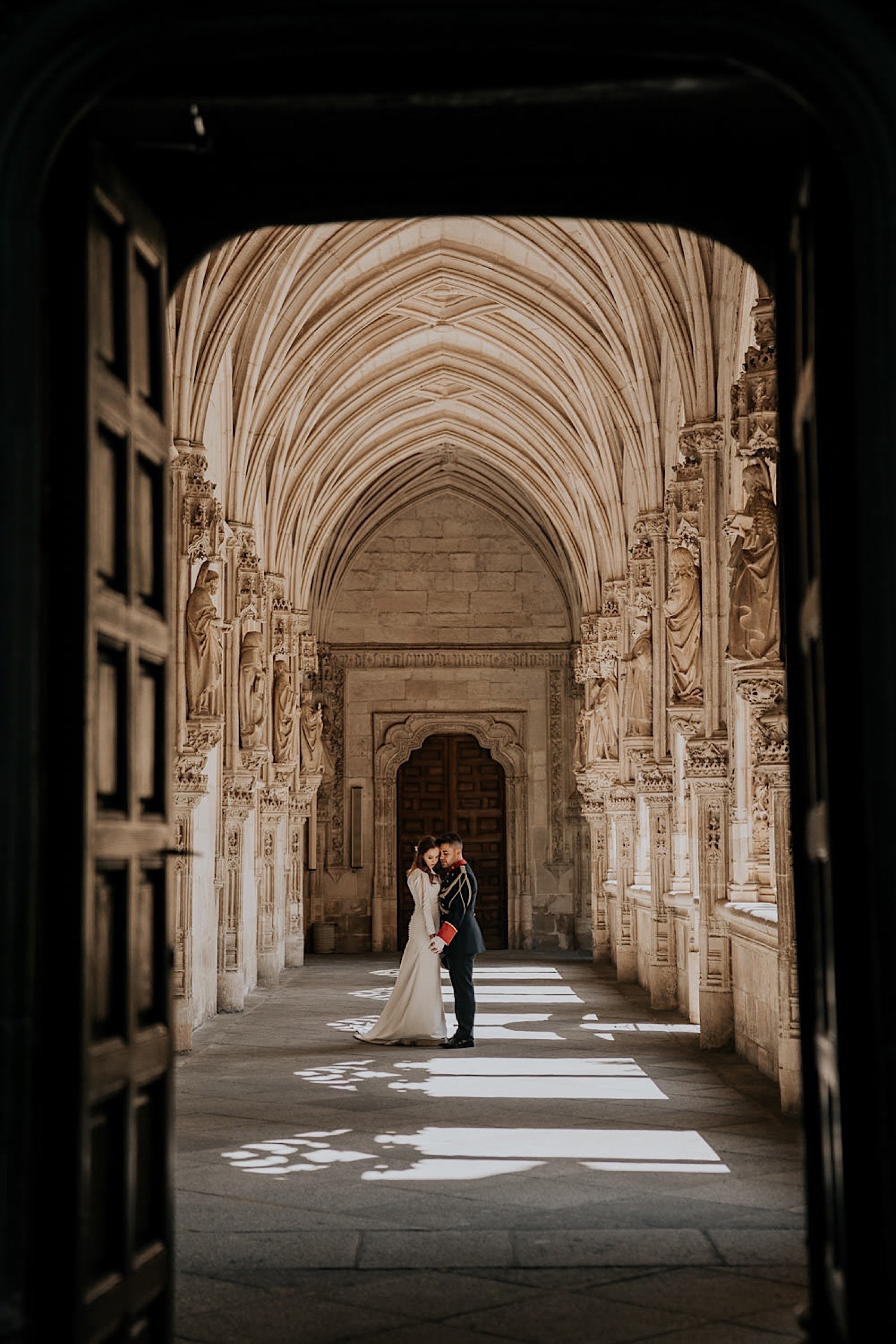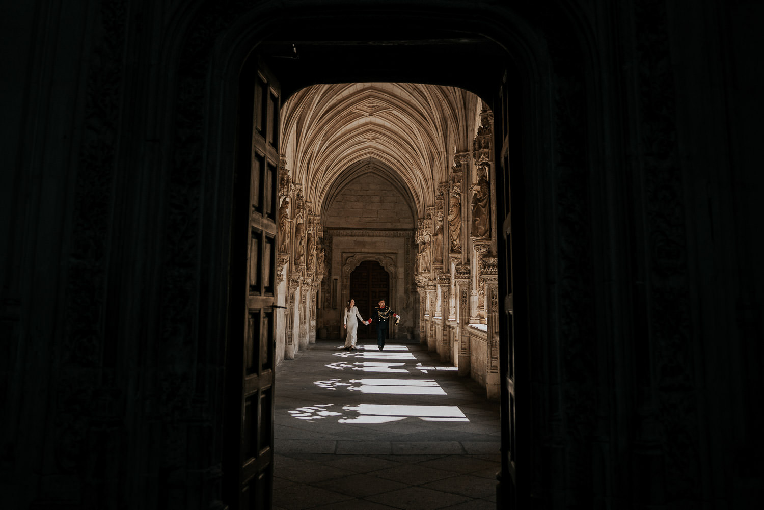 Qué calor hacía cuando llegamos. Pero, al entrar al Monasterio de San Juan de los Reyes todo se esfumó. Qué fresquito y qué tranquilidad, en silencio y nosotros solitos. Aproveché todas las luces y las sombras que me regalaba el lugar y capté todas las improvisaciones de Alfonso y Mónica, un baile por allí, un abrazo por allá, ahora te quito y te pongo el tricornio, risas y más risas…