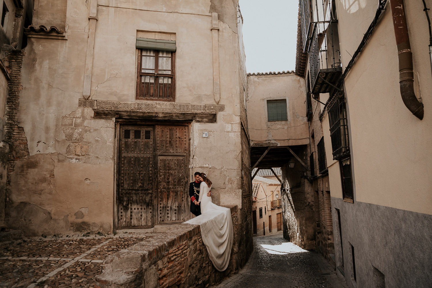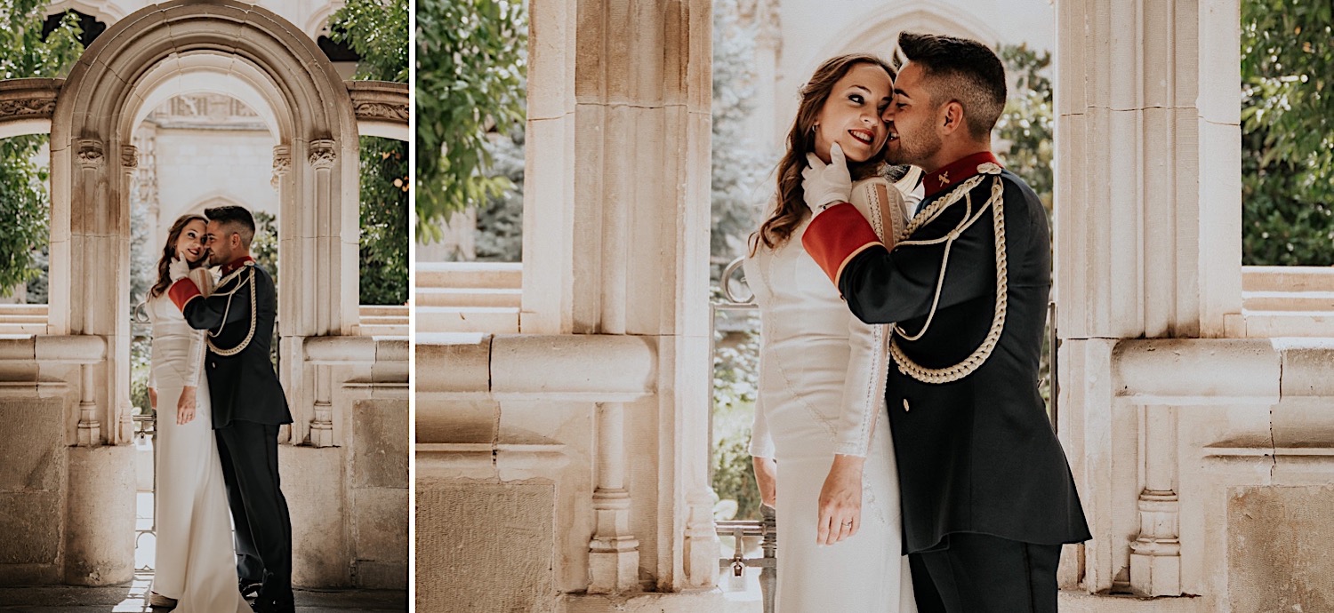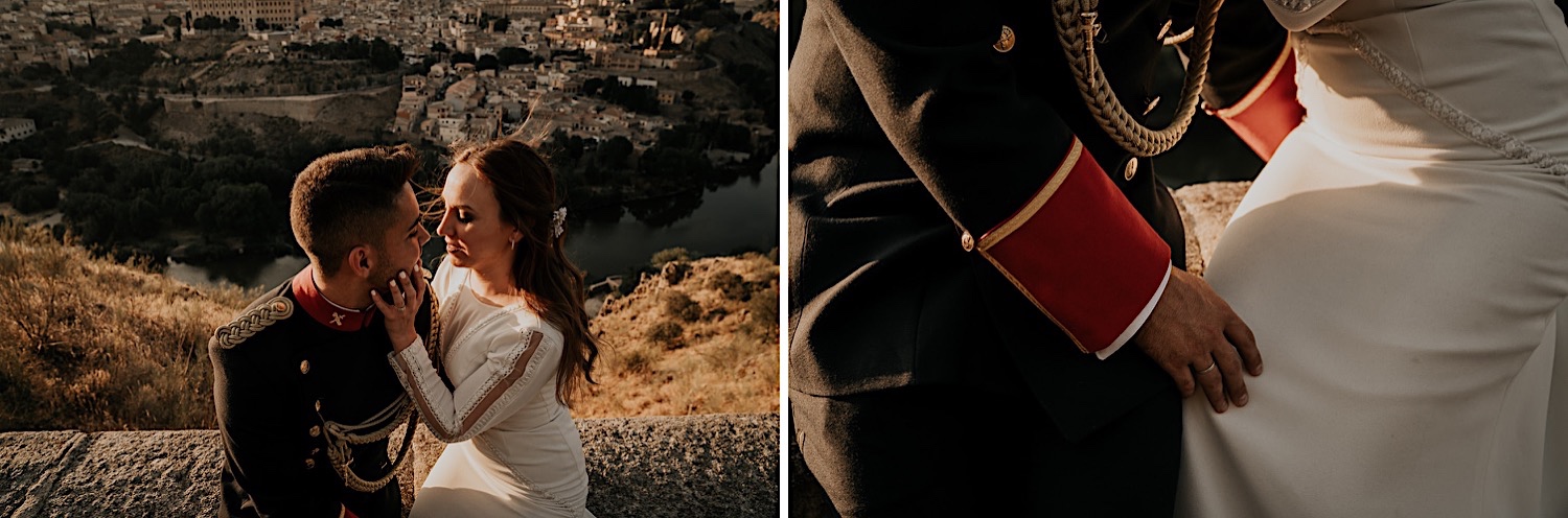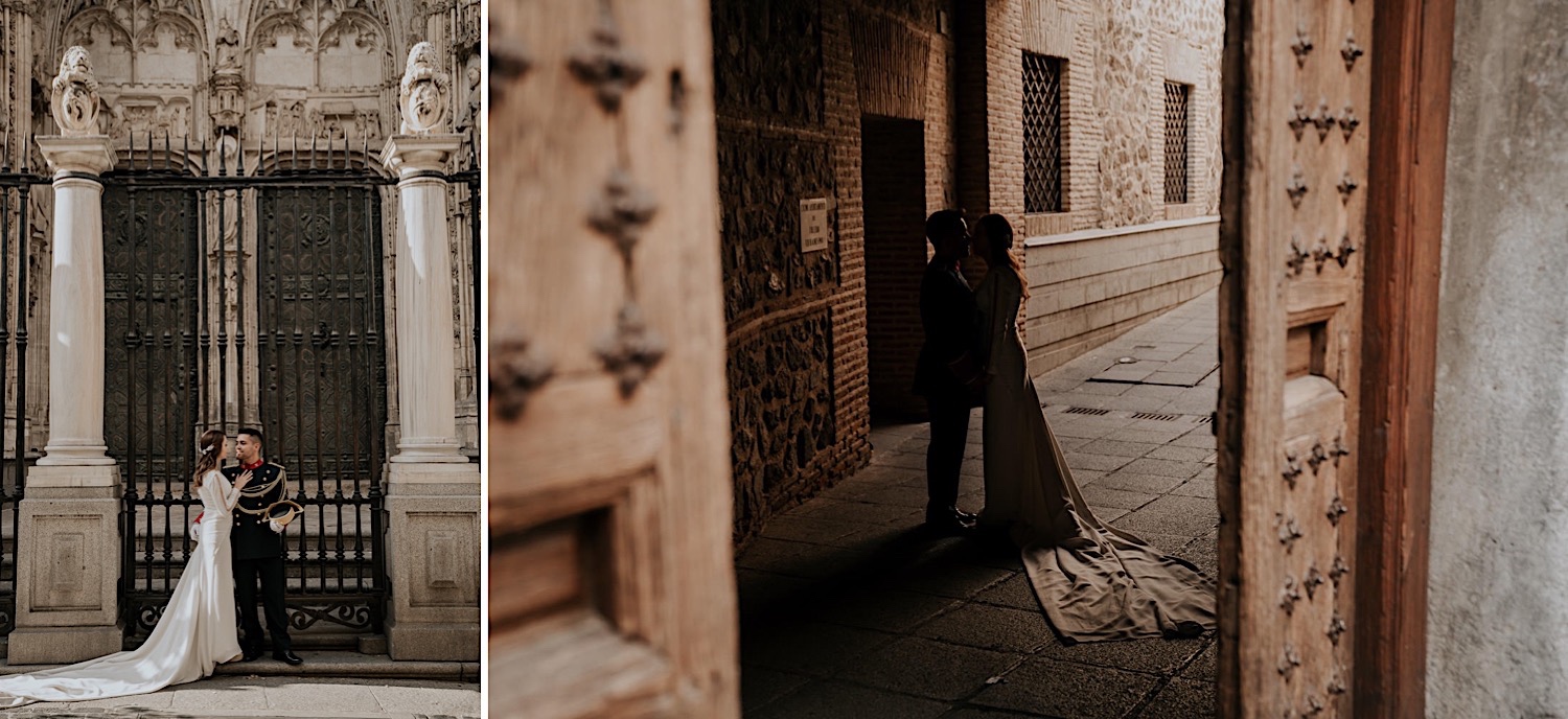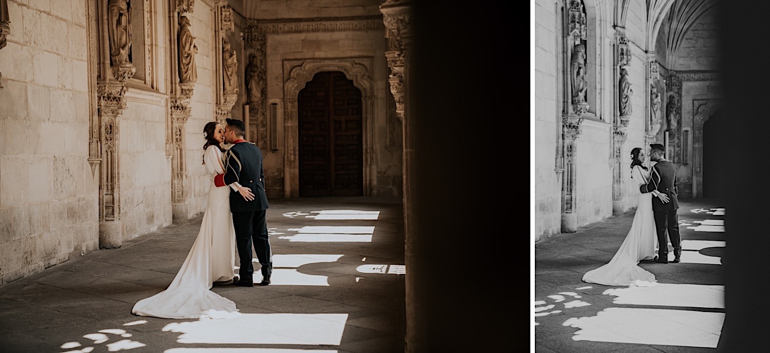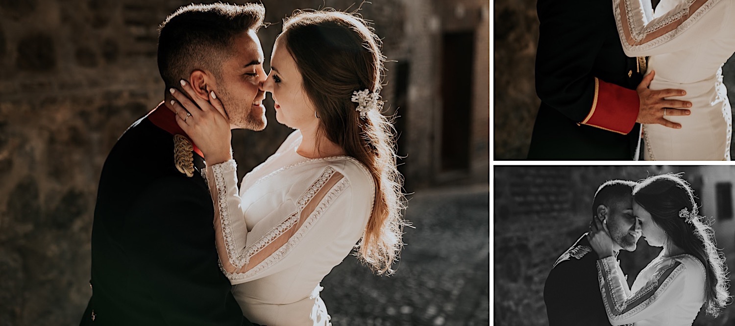 Cuando Alfonso y Mónica decidieron hacer su postboda en Toledo pensé en su arquitectura y todo lo que me podían ofrecer aquellas calles. Alfonso estaba super elegante con su traje de gala de guardia civil y Mónica preciosa con un vestido de Isabel Hervás.