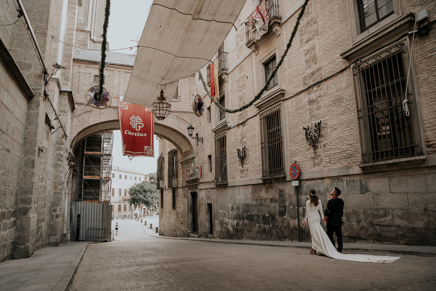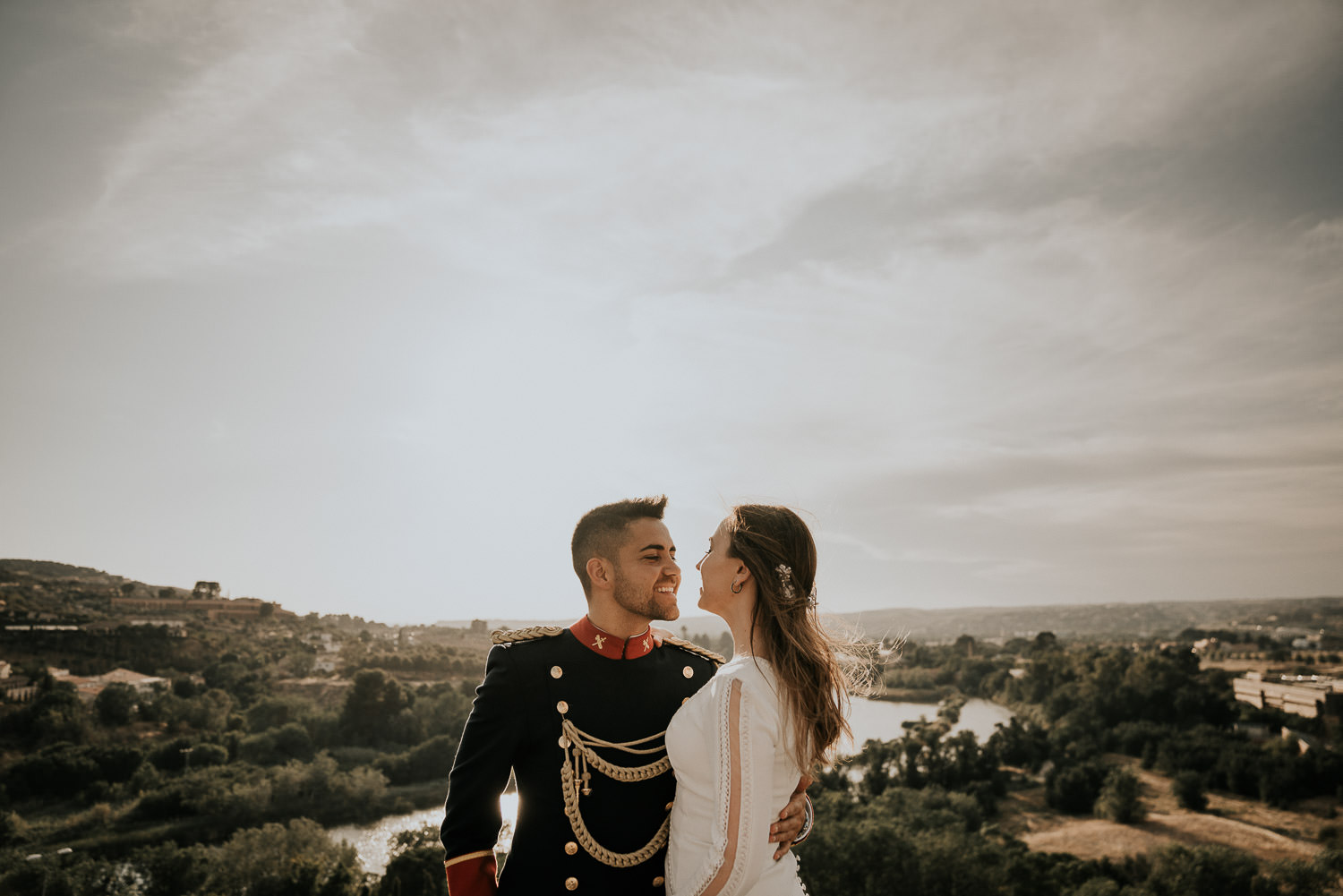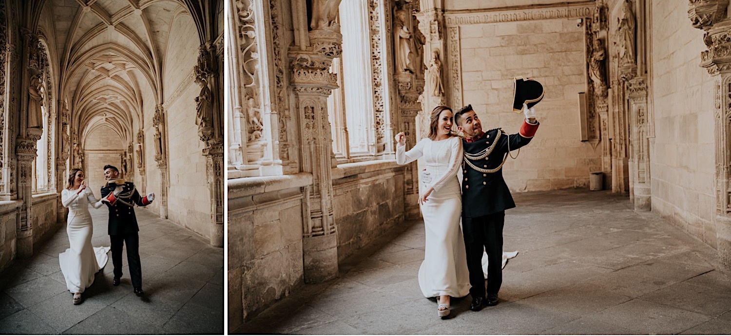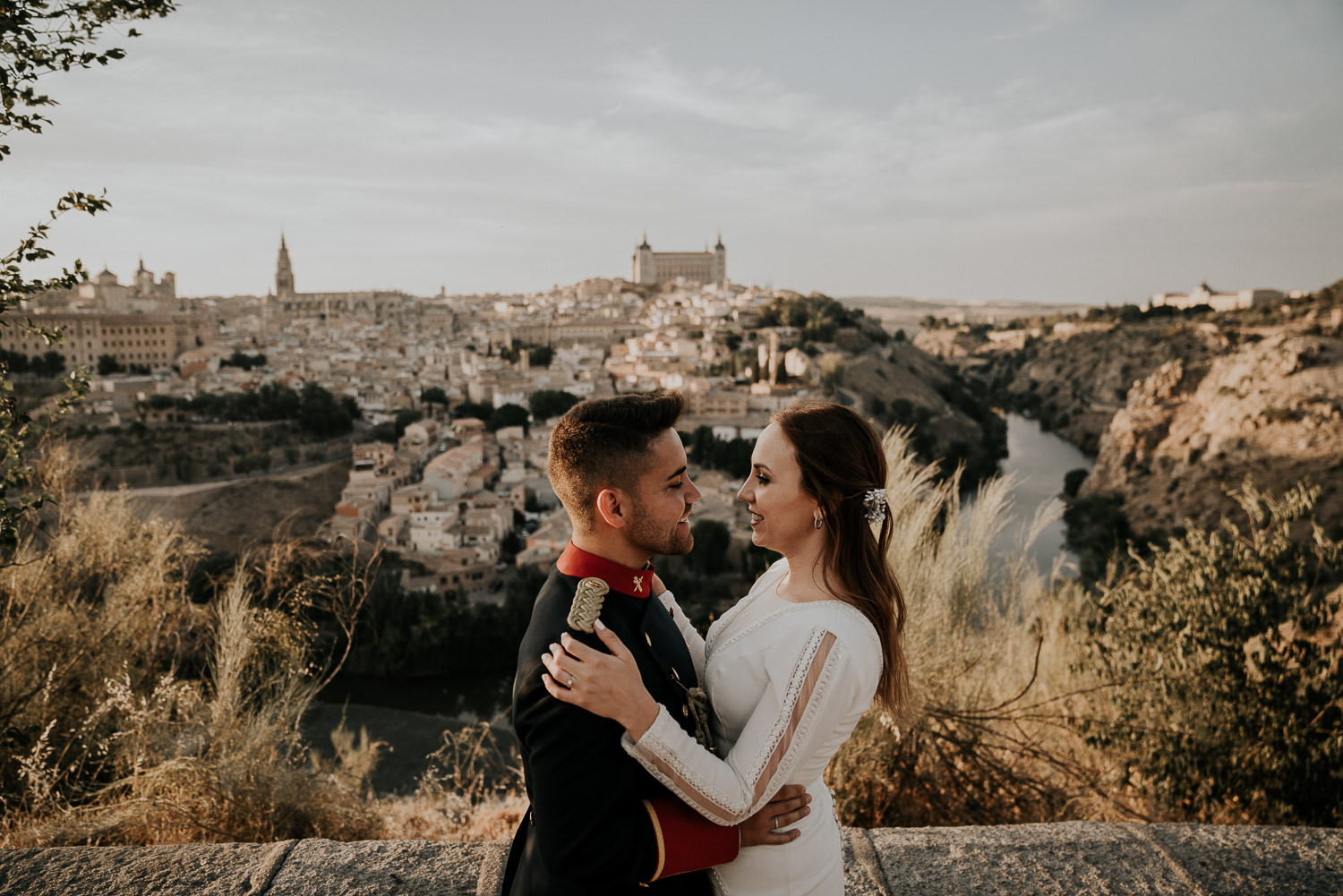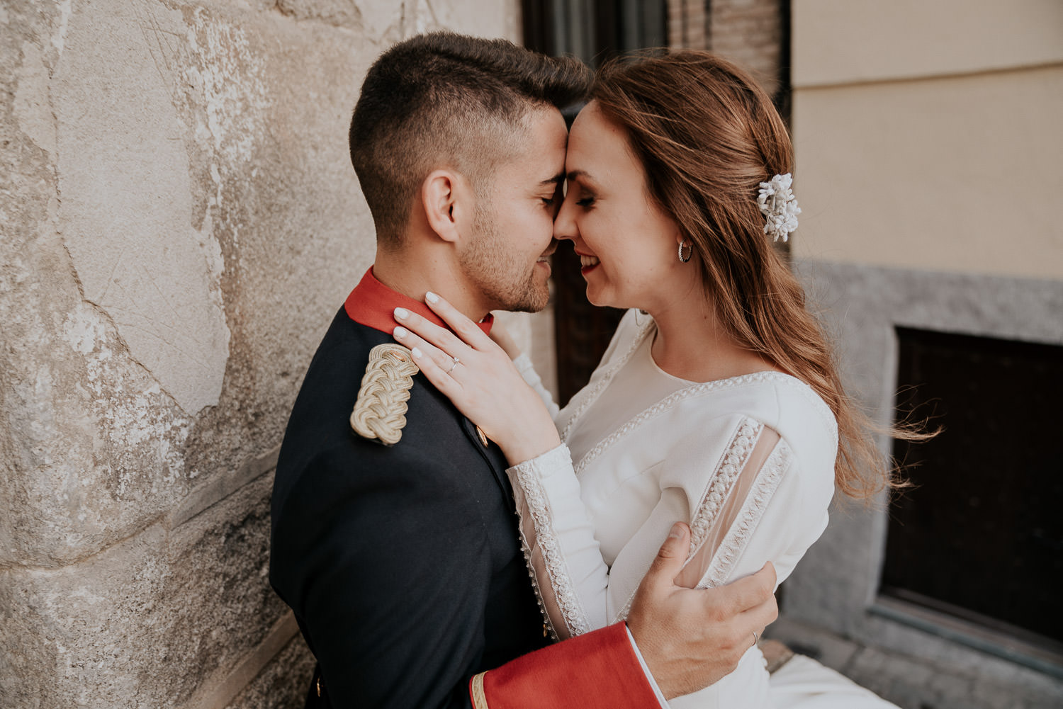 Cuando Alfonso y Mónica decidieron hacer su postboda en Toledo pensé en su arquitectura y todo lo que me podían ofrecer aquellas calles. Alfonso estaba super elegante con su traje de gala de guardia civil y Mónica preciosa con un vestido de Isabel Hervás.