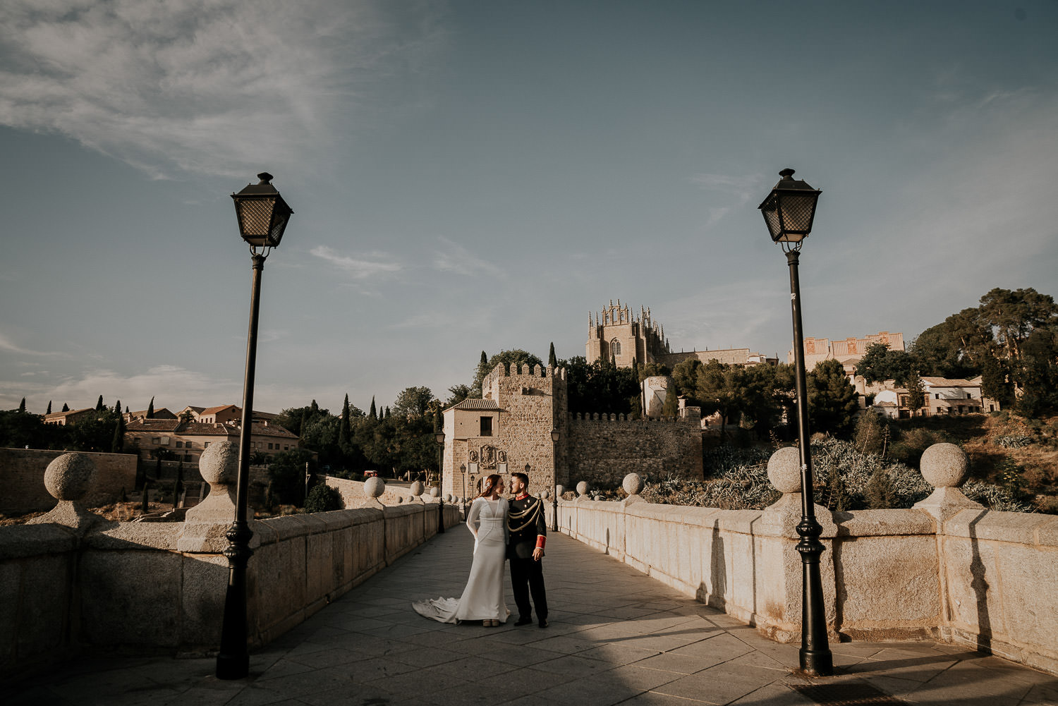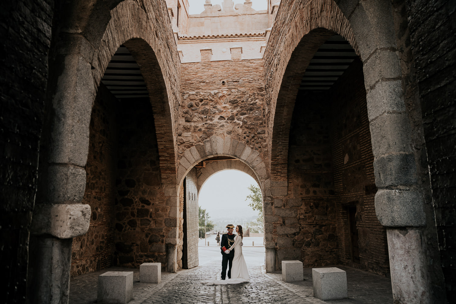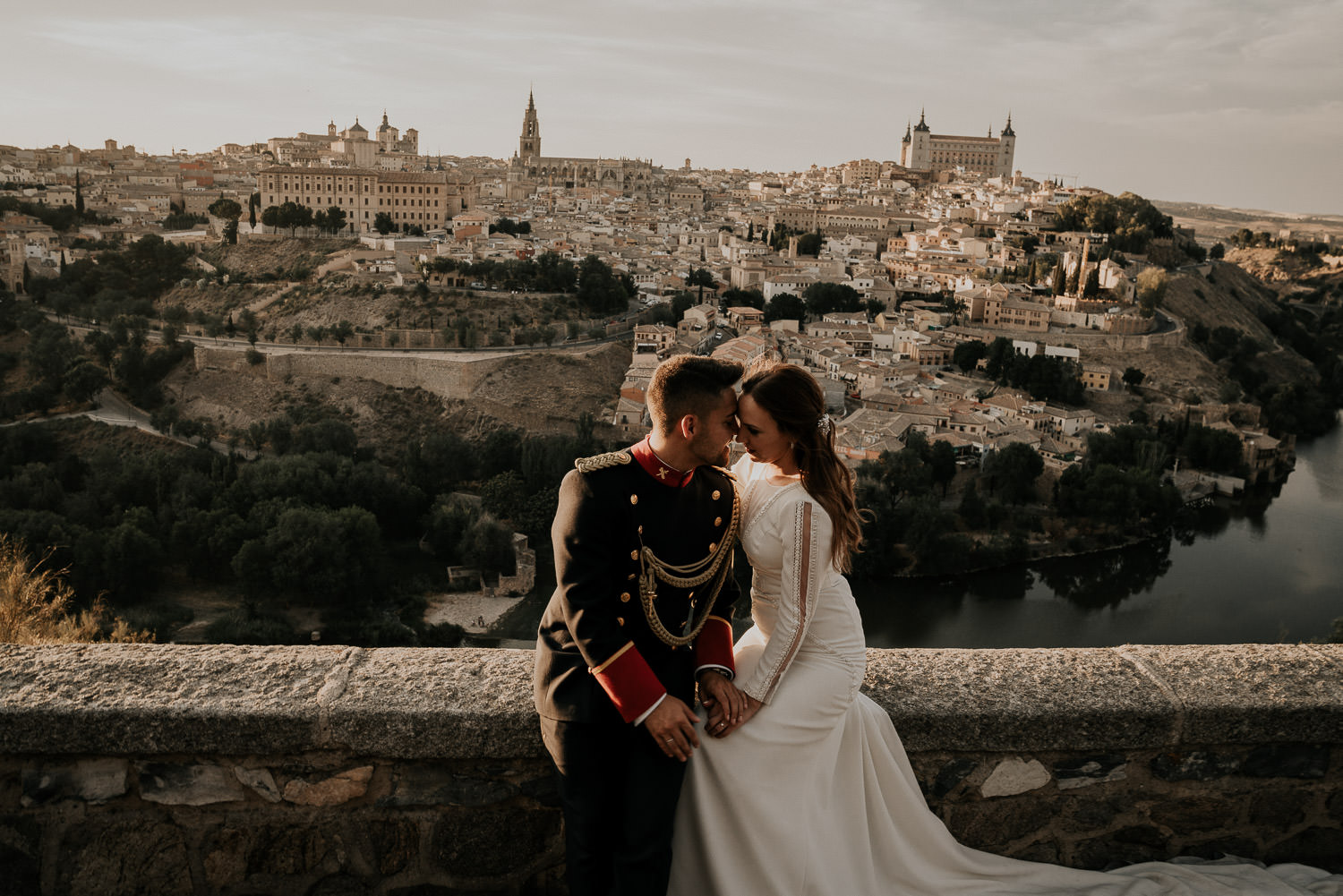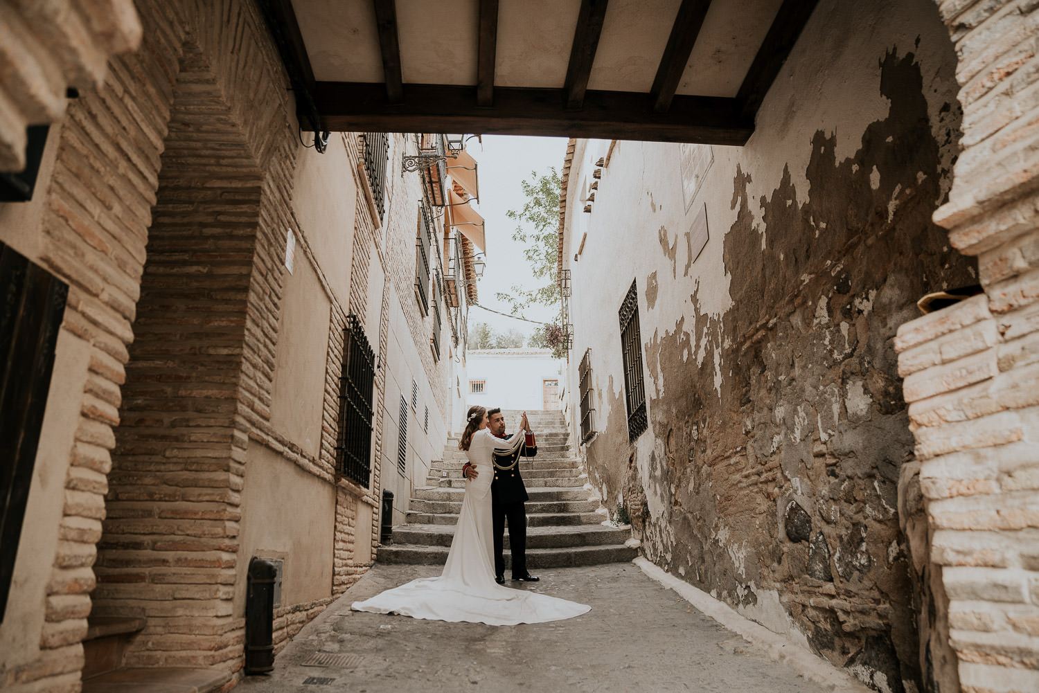 Cuando Alfonso y Mónica decidieron hacer su postboda en Toledo pensé en su arquitectura y todo lo que me podían ofrecer aquellas calles. Alfonso estaba super elegante con su traje de gala de guardia civil y Mónica preciosa con un vestido de Isabel Hervás.