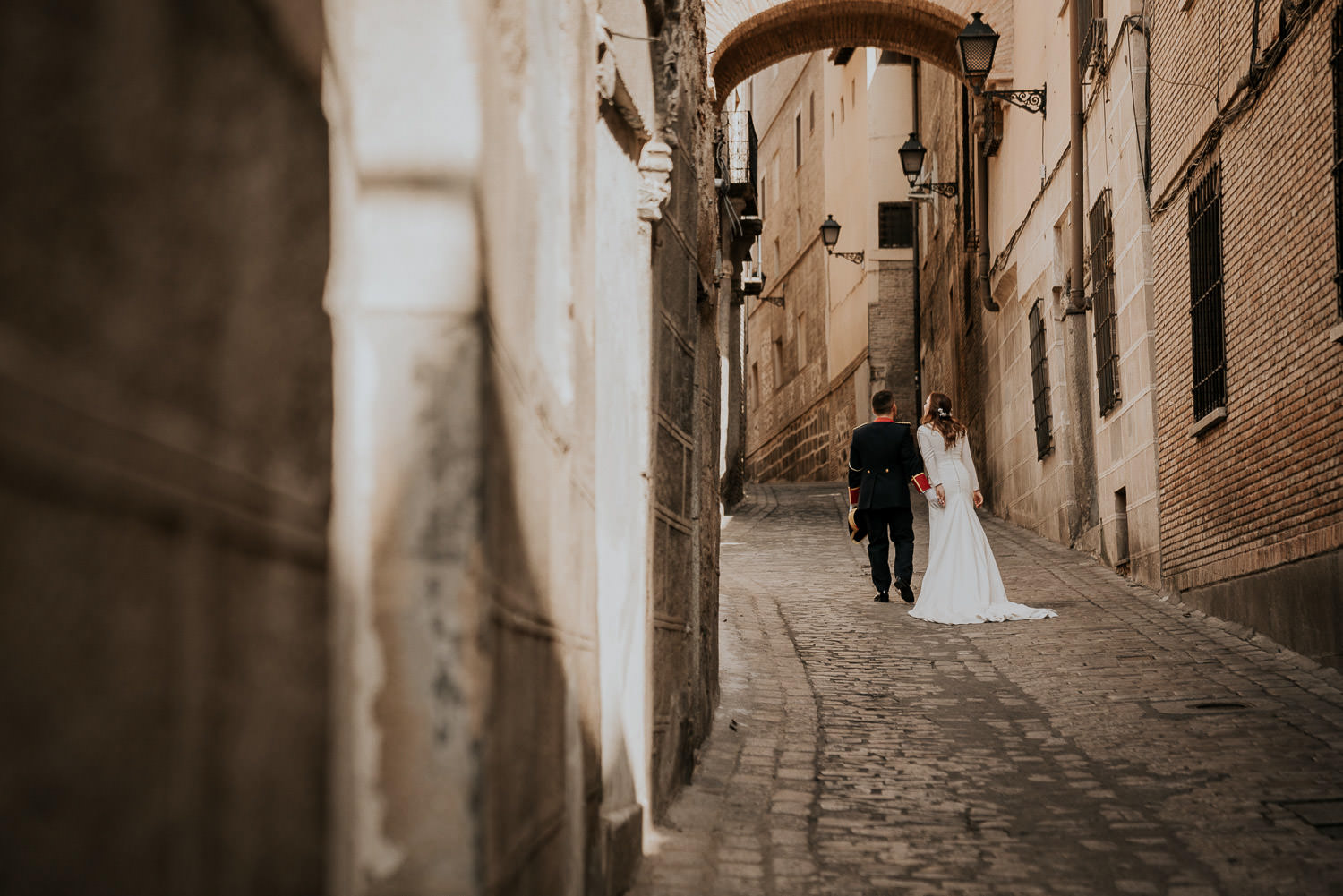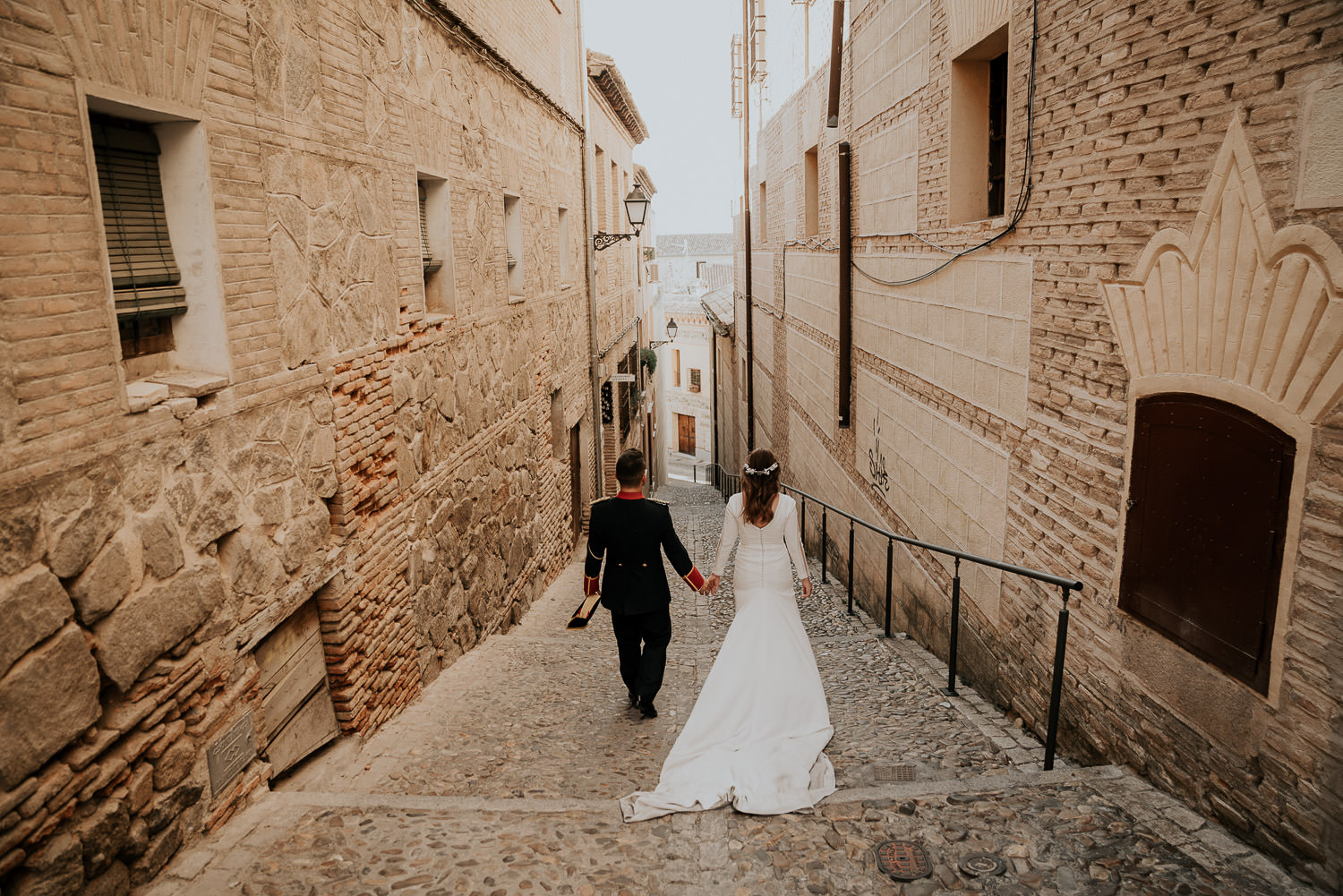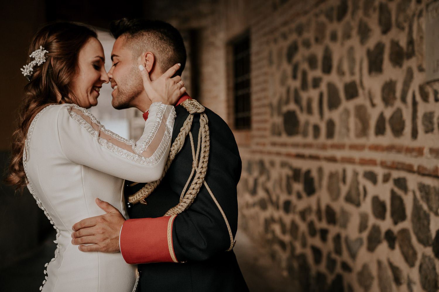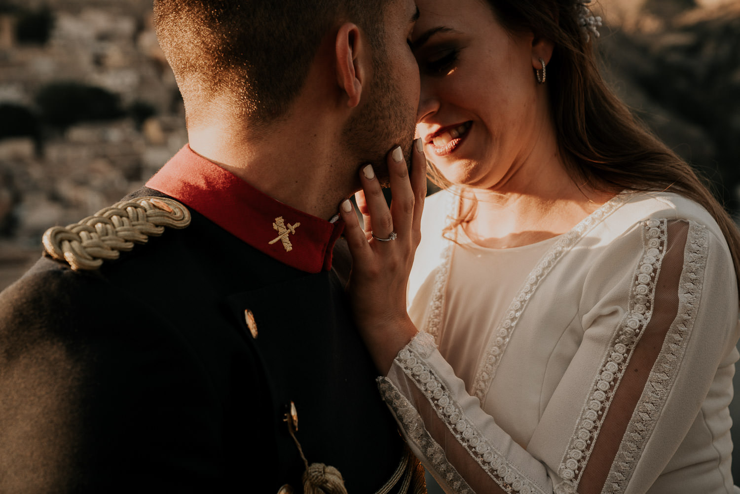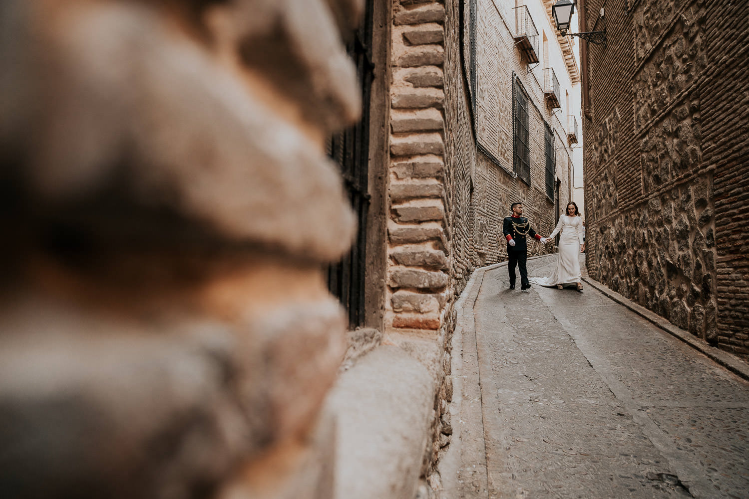 Cuando Alfonso y Mónica decidieron hacer su postboda en Toledo pensé en su arquitectura y todo lo que me podían ofrecer aquellas calles. Alfonso estaba super elegante con su traje de gala de guardia civil y Mónica preciosa con un vestido de Isabel Hervás.