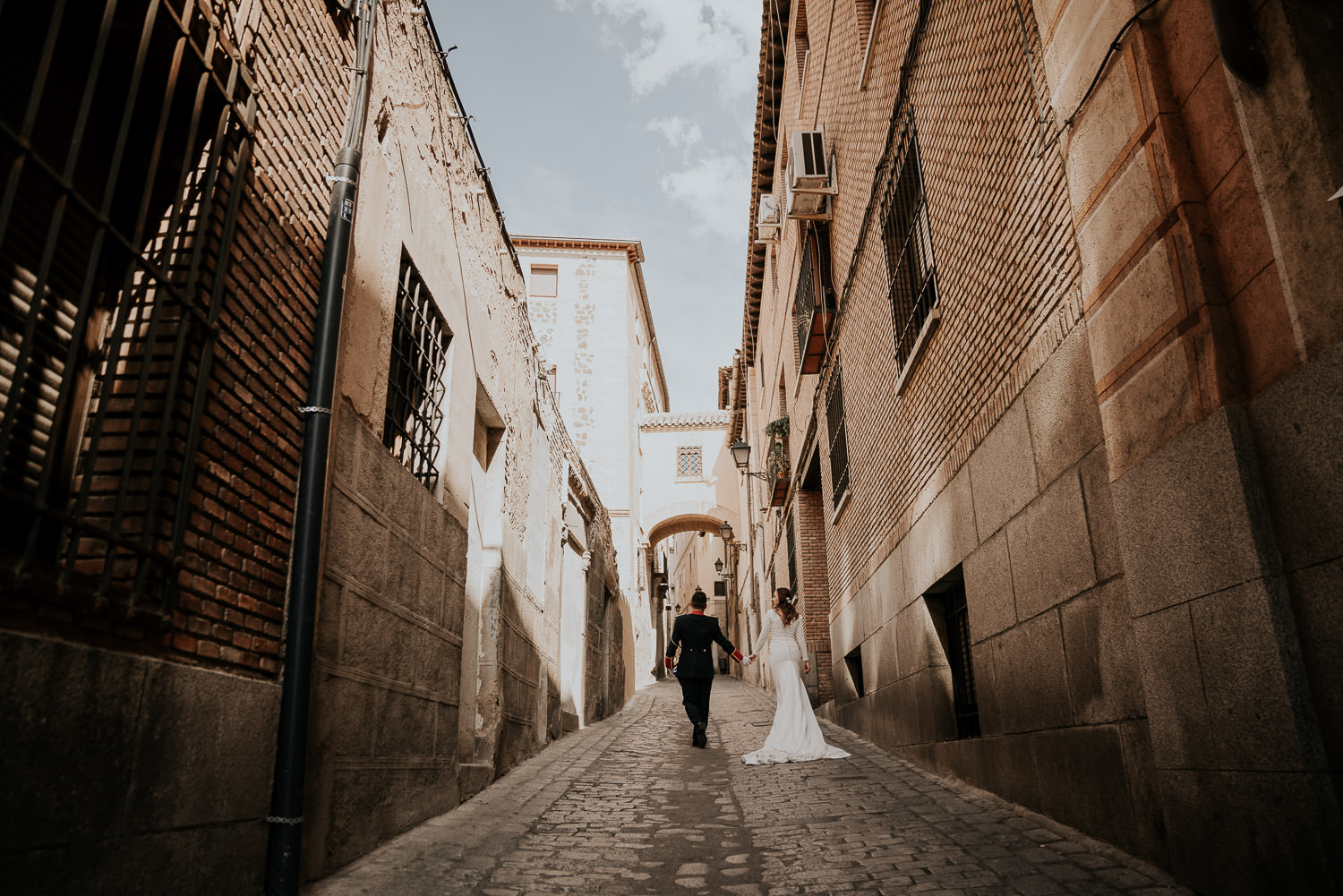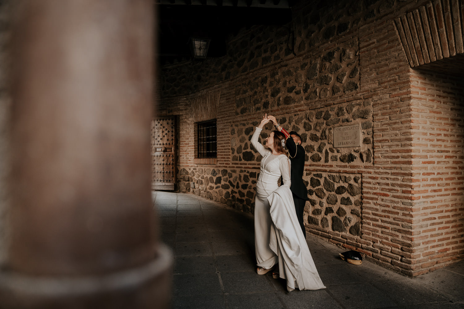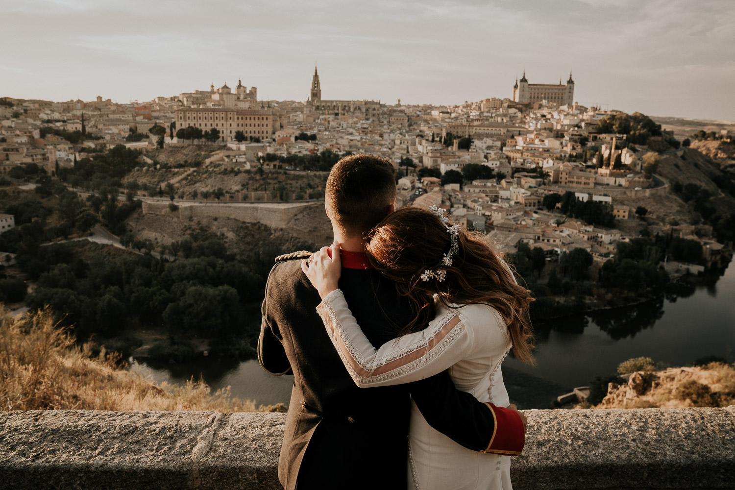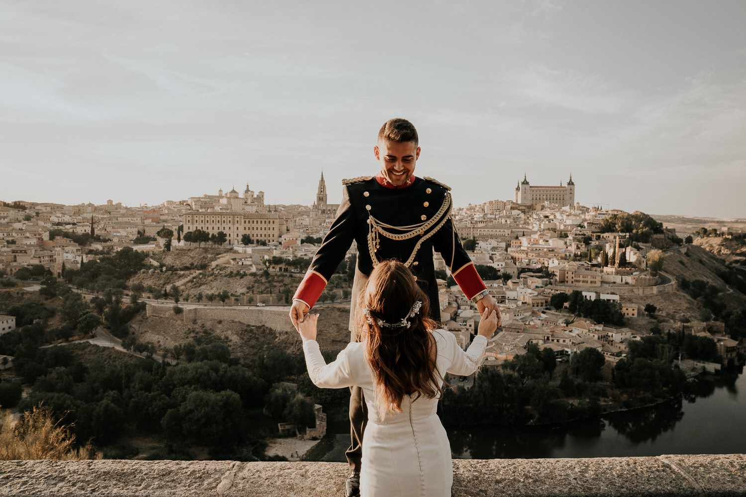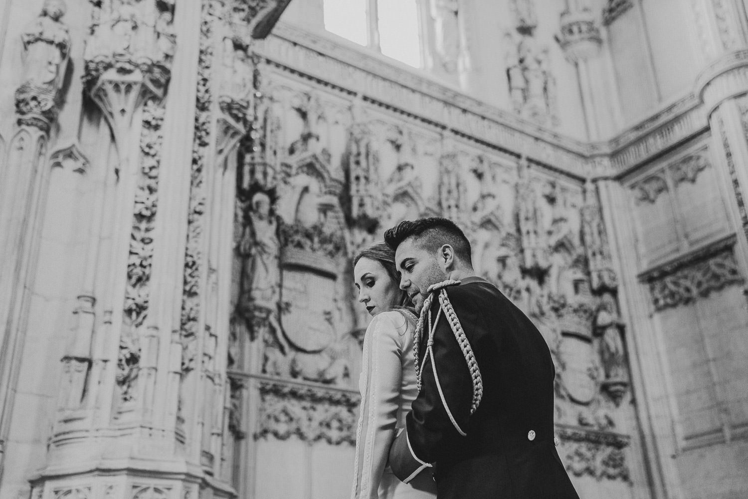 Cuando Alfonso y Mónica decidieron hacer su postboda en Toledo pensé en su arquitectura y todo lo que me podían ofrecer aquellas calles. Alfonso estaba super elegante con su traje de gala de guardia civil y Mónica preciosa con un vestido de Isabel Hervás.