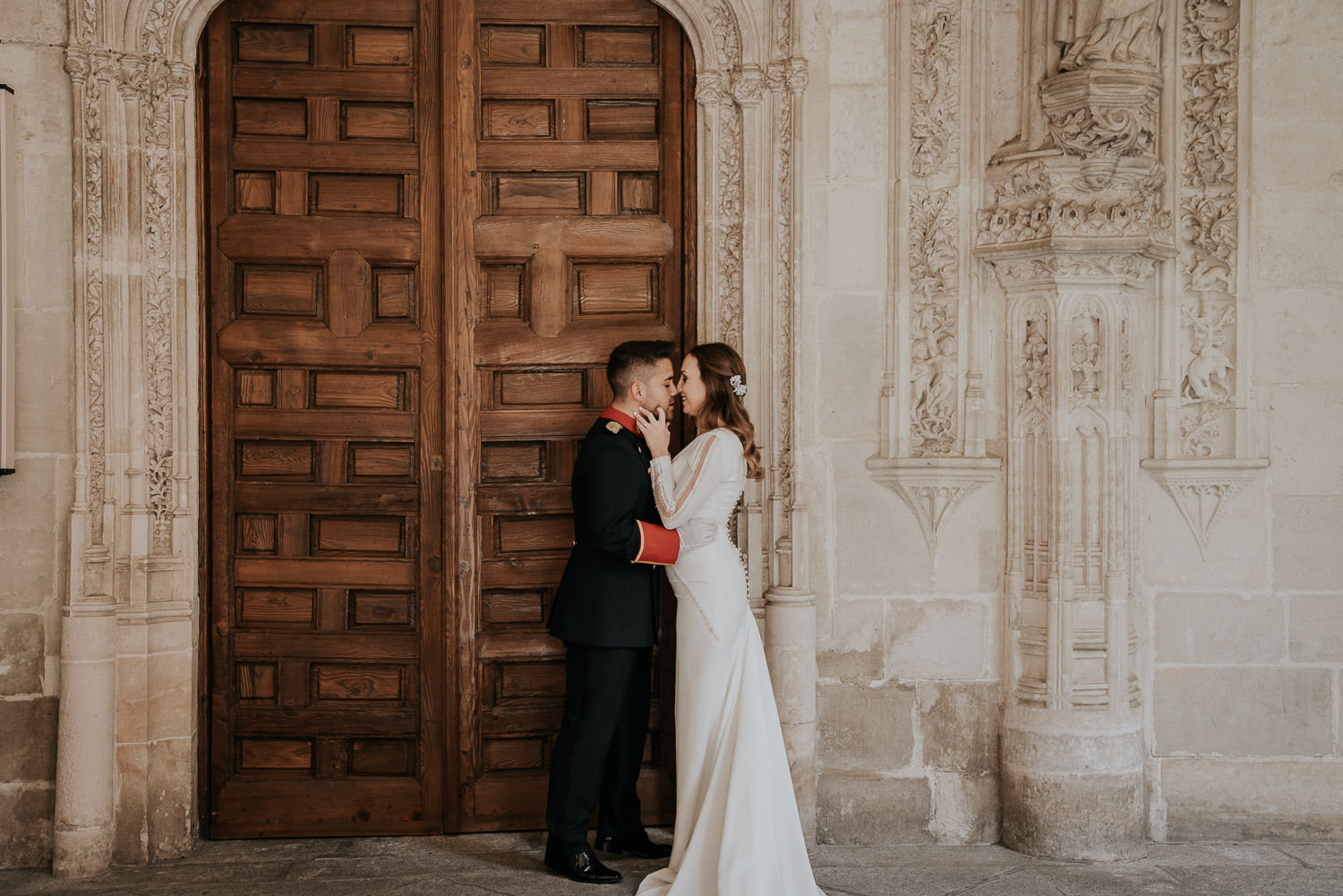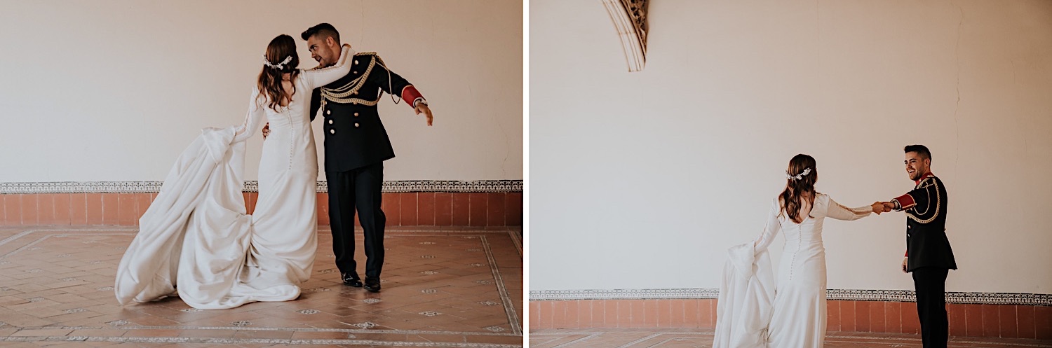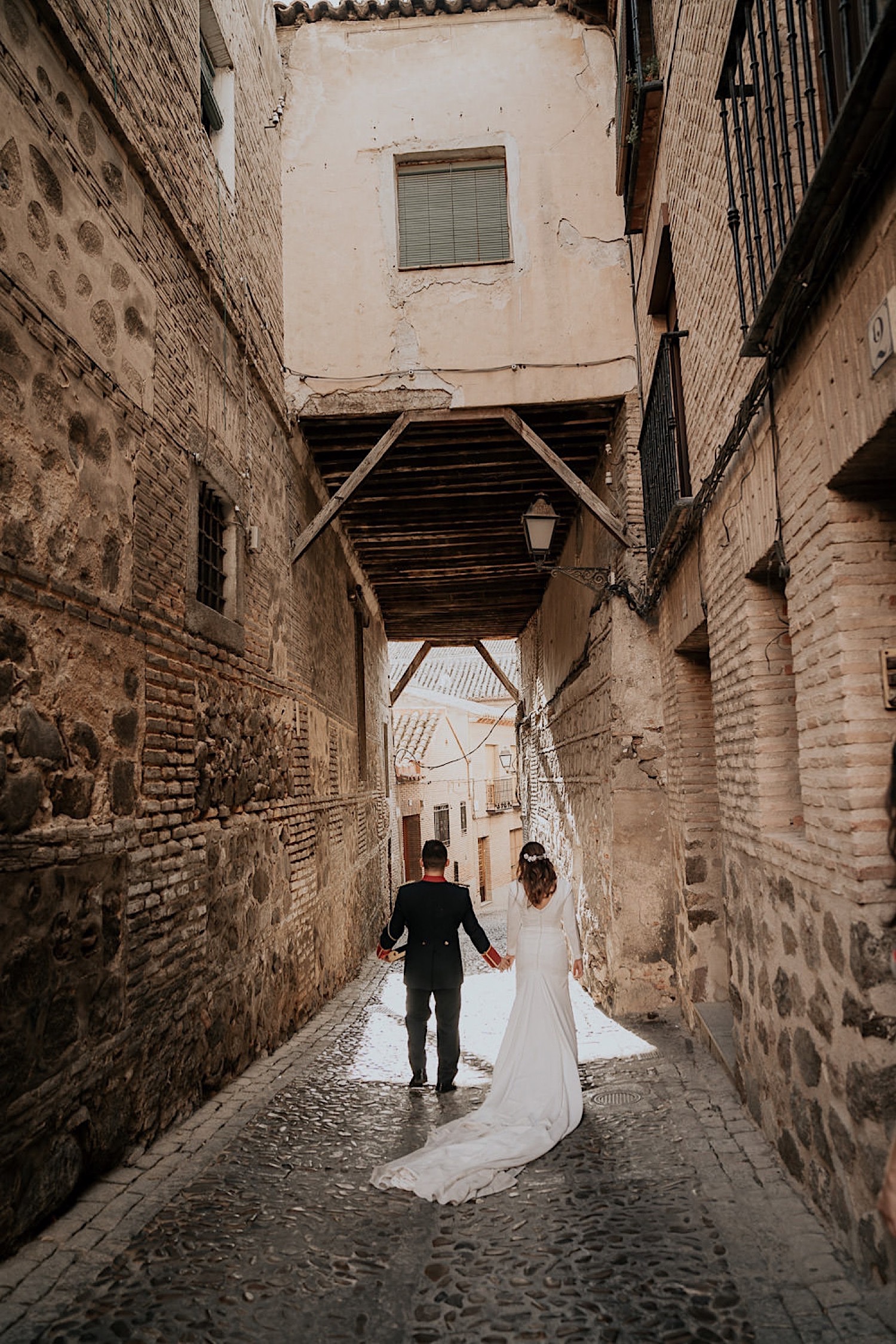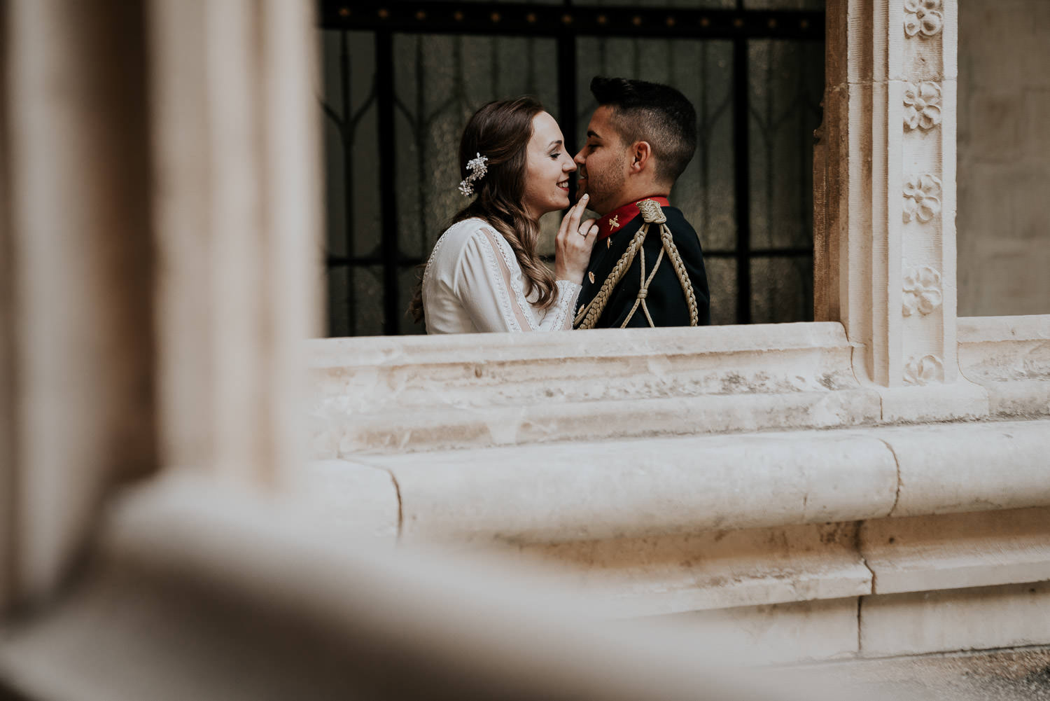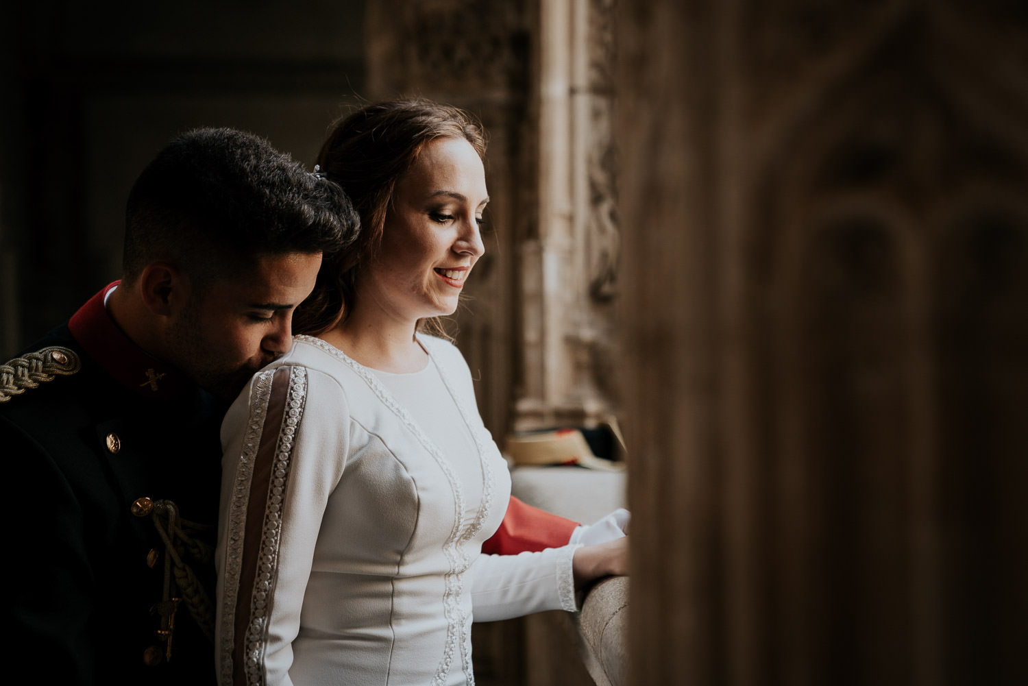 Cuando Alfonso y Mónica decidieron hacer su postboda en Toledo pensé en su arquitectura y todo lo que me podían ofrecer aquellas calles. Alfonso estaba super elegante con su traje de gala de guardia civil y Mónica preciosa con un vestido de Isabel Hervás.