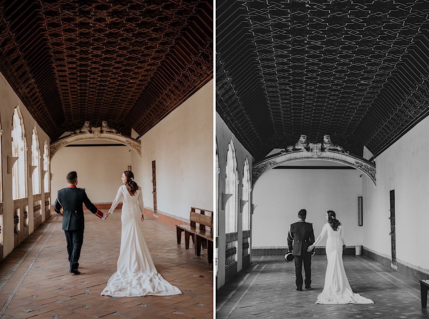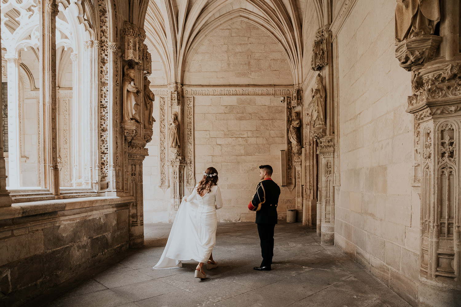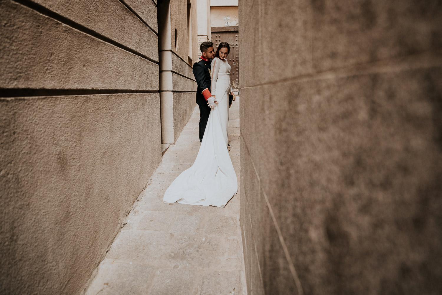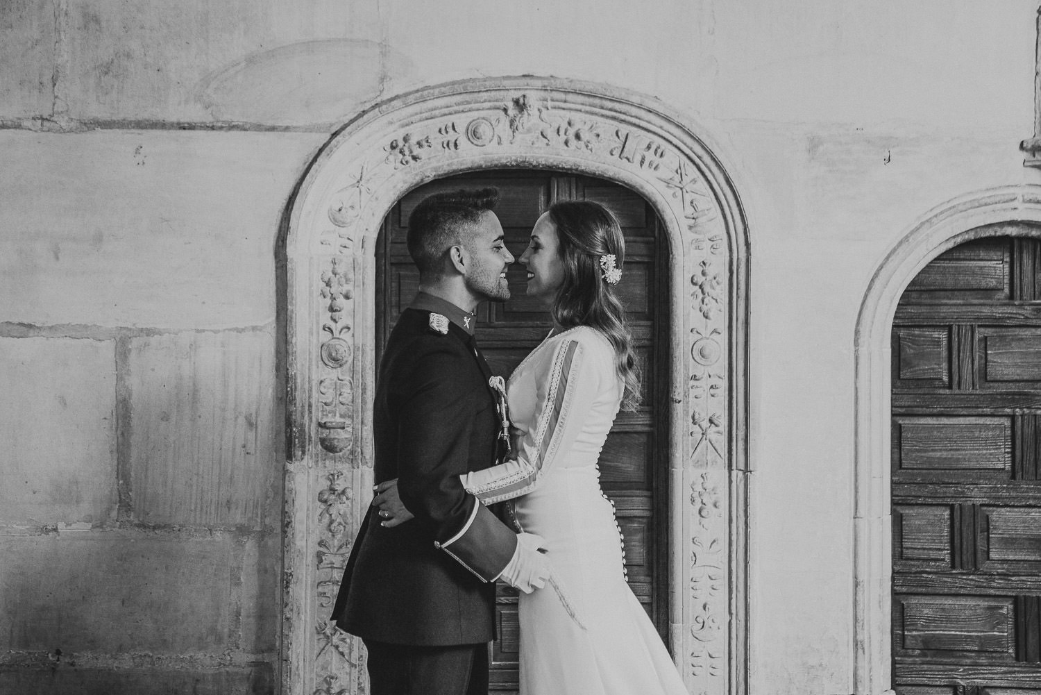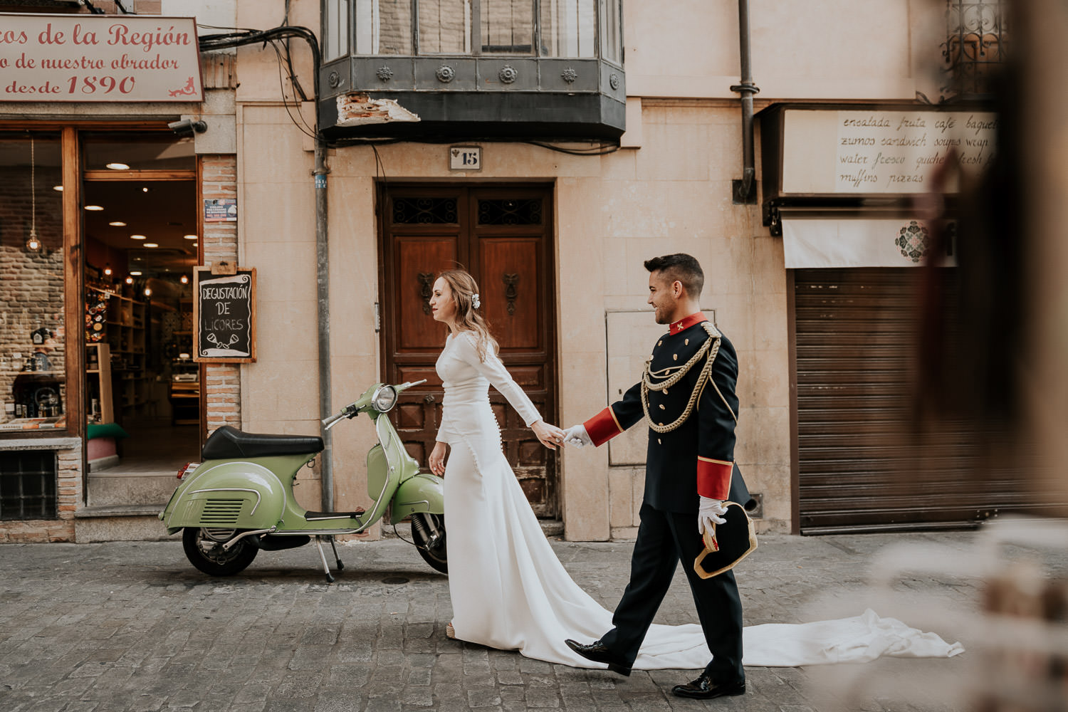 Cuando Alfonso y Mónica decidieron hacer su postboda en Toledo pensé en su arquitectura y todo lo que me podían ofrecer aquellas calles. Alfonso estaba super elegante con su traje de gala de guardia civil y Mónica preciosa con un vestido de Isabel Hervás.
